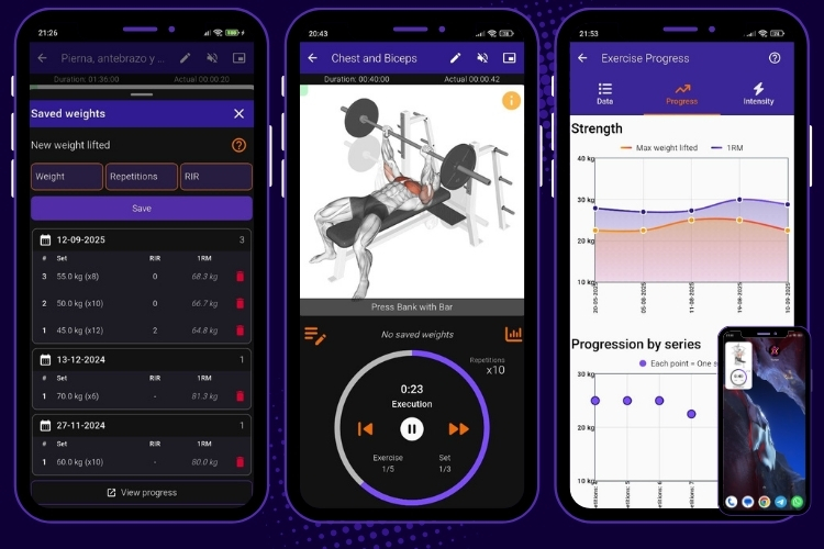 Guardado de peso levantado/distancias recorridas en ejercicios (SIN LÍMITES)
