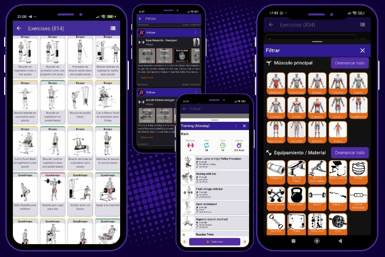 ·Filtros por músculo, material, dificultad...